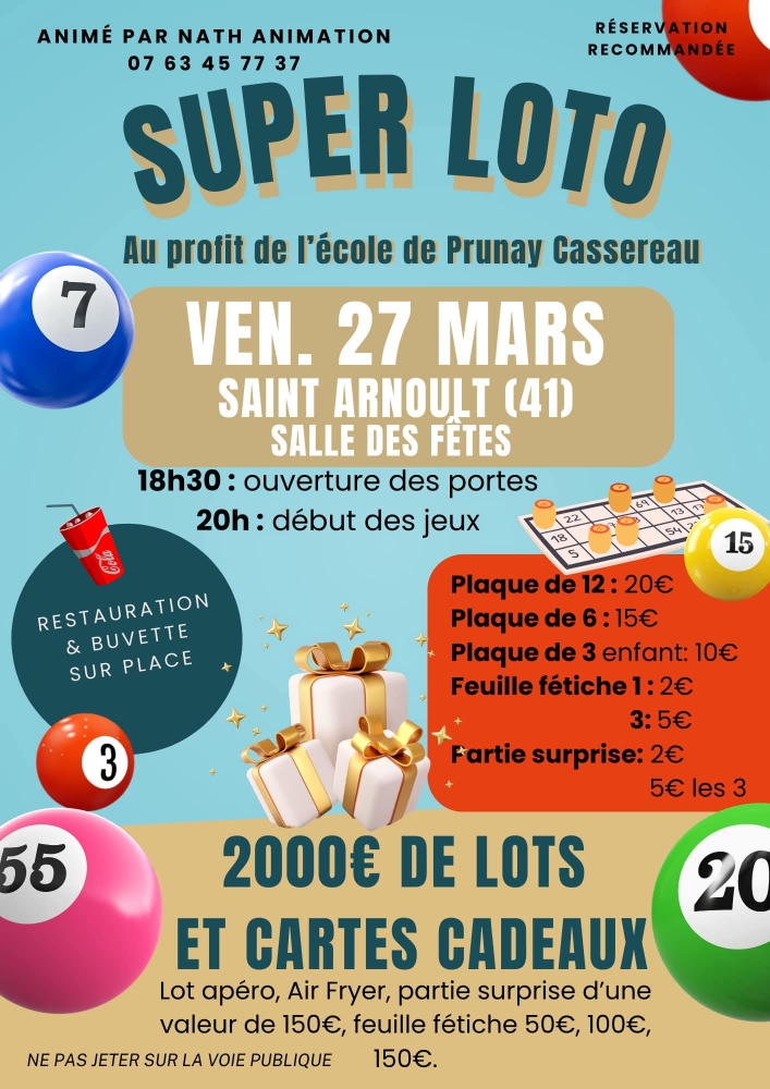 RPI Authon-Prunay : Loto au profit de l’école de Prunay