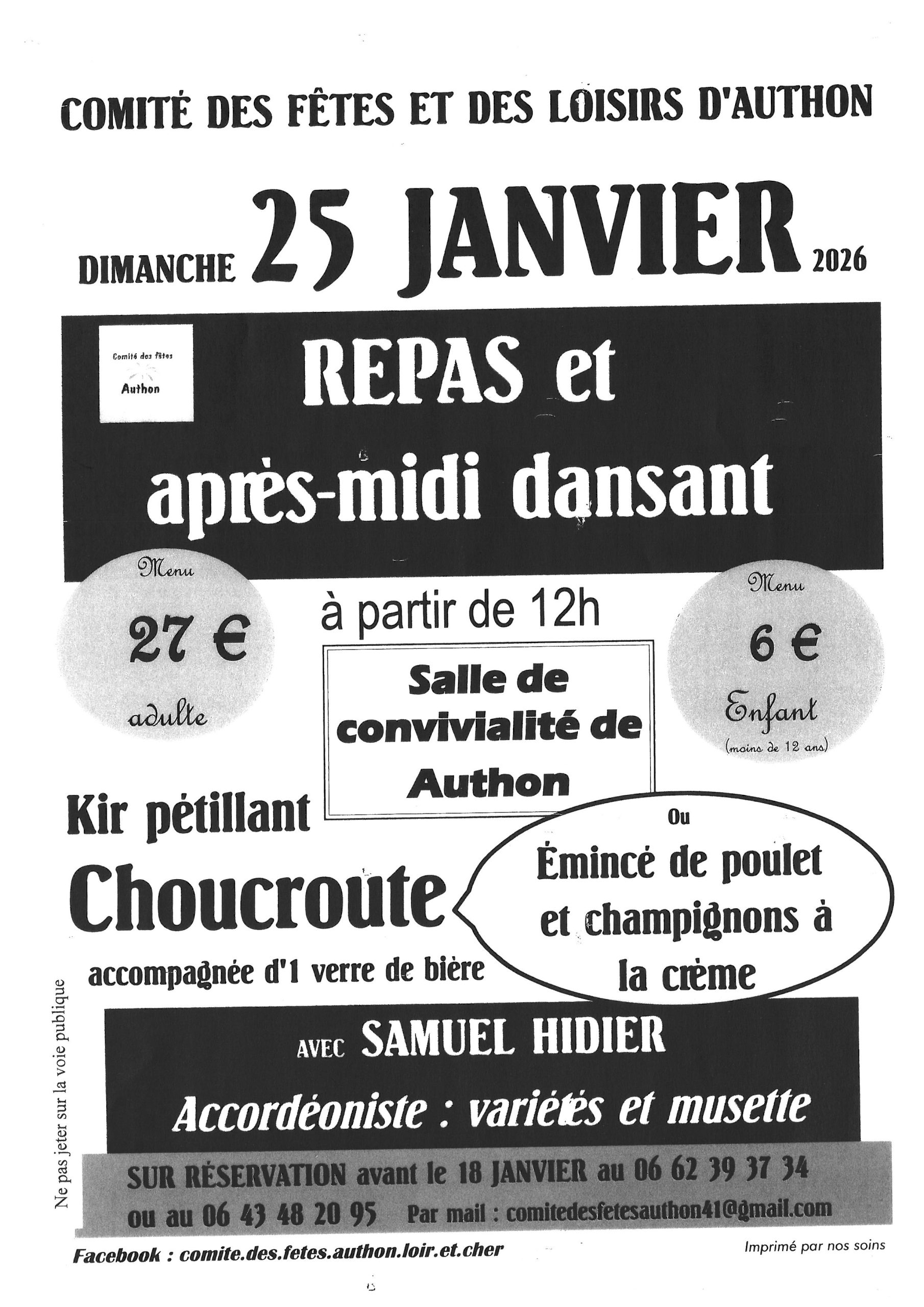 Repas et après-midi dansant organisé par le comité des fêtes d’AUTHON